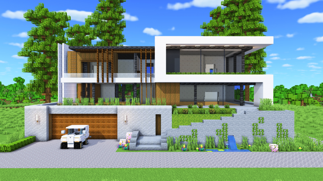 Modern house with swimming pool, baths and garage - built by WiederDude. Please use the //paste -e command pasting the schem file to paste all the item frames. This minecraft build is free to download. You can find schem and world map download for this build.