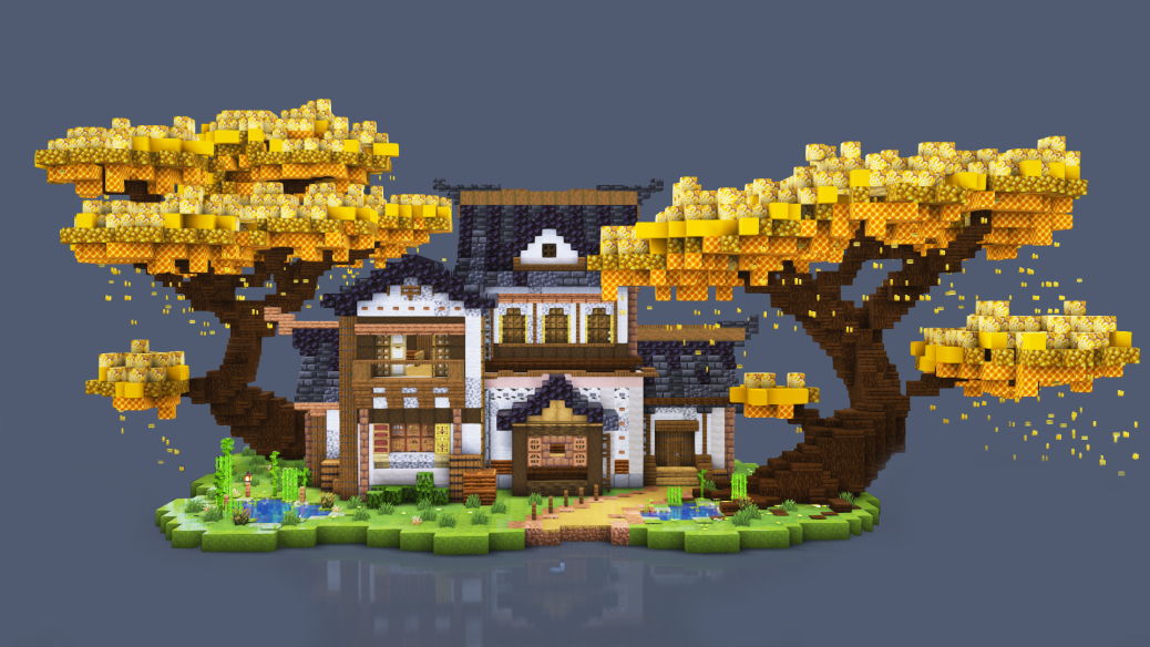 Small oriental house with custom tree. This Minecraft build is free to download. You can find schem and world map download for this build.
